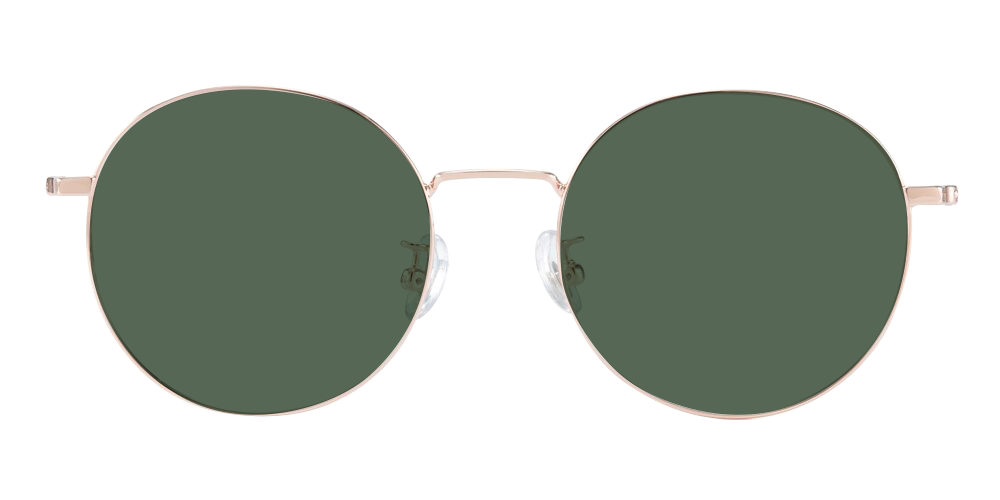 Round Rose Gold Sunglasses with Polarized Green Lenses- SUP2070